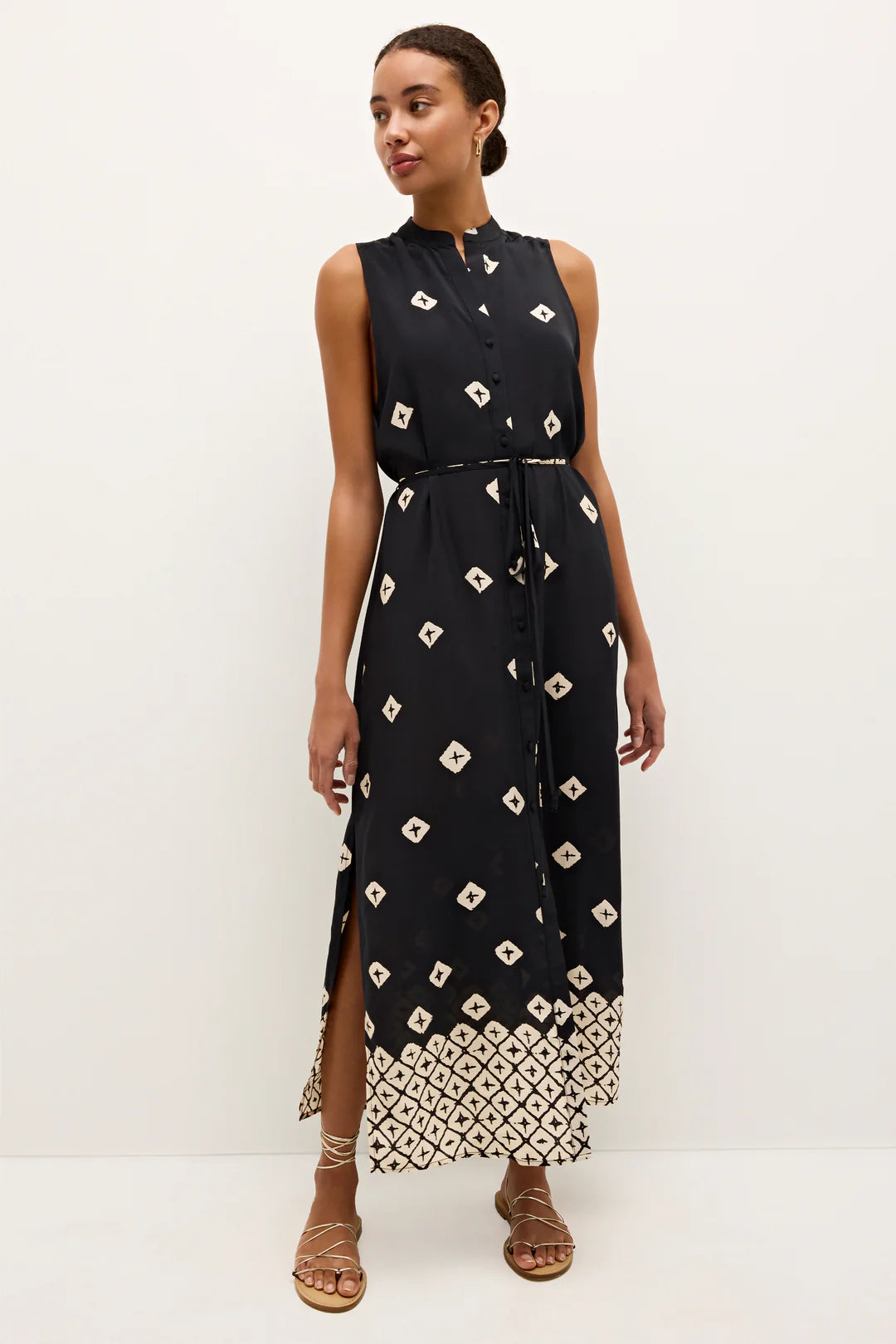 A classic shirtdress will take you almost, well, anywhere. From the office to brunch to vacation, Kirkley's chic sleeveless silhouette is just the ticket. Add polish by wearing it with the belt or forgo for a looser A-line look. Kirkley is pictured here in Ceramic, a Shibori placement print in black and cream.