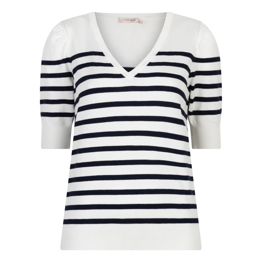 Esqualo - Sweater Short Sleeve Stripe Knit - Off White/Navy