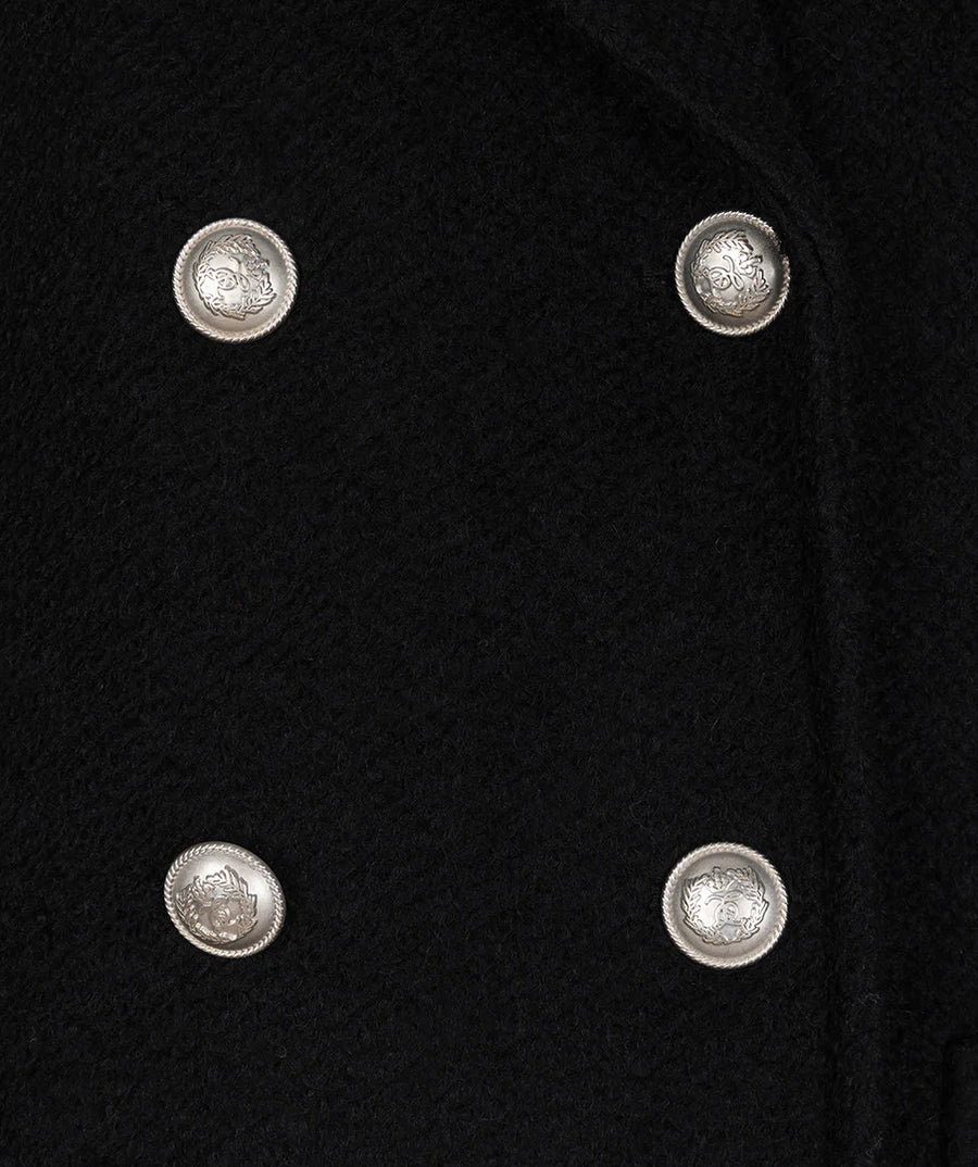 Double Breasted Boucle Coat - Black