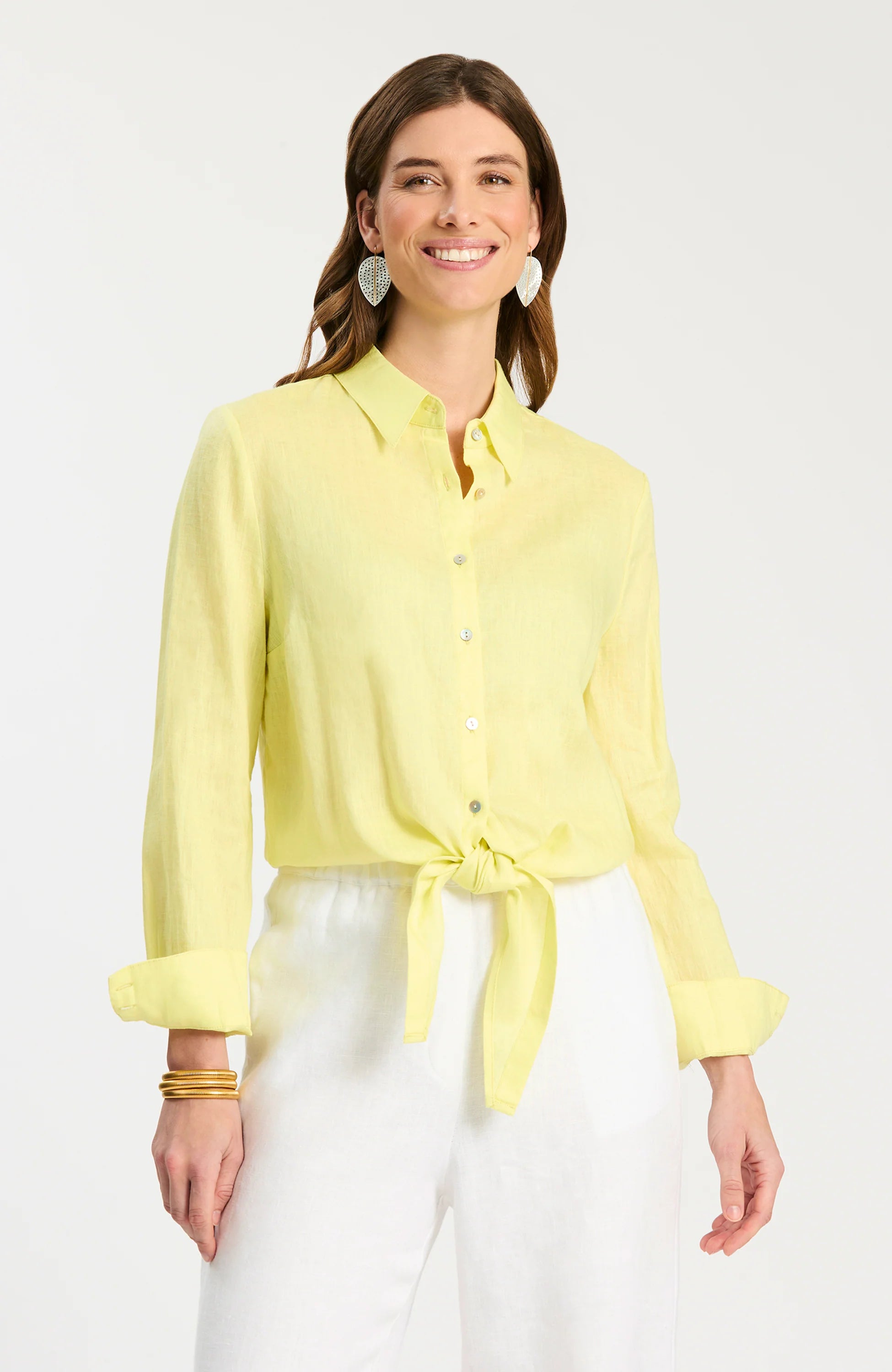 A warm-weather wardrobe staple crafted in breathable linen, the Amara Shirt features a classic button-front silhouette and a flattering tie-front detail that defines the waist with effortless polish. Easy, versatile, and timeless, it pairs perfectly with white denim or linen trousers for an elevated everyday summer look.